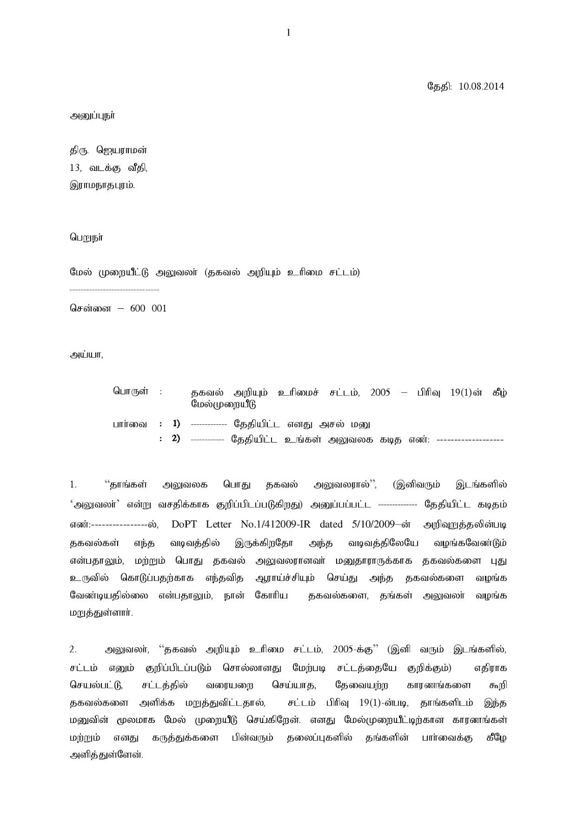 Rti Appeal Format In Tamil