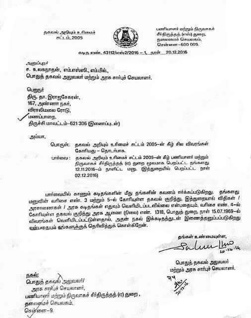 State Level Rti Tamilnadu